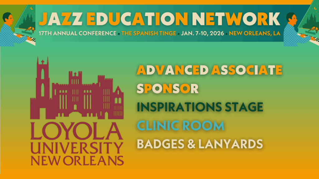 Loyola University New Orleans School of Music and Theatre Professions supports the Inspirations Stage, one clinic room, and is the exclusive sponsor of the 2026 Conference lanyard and badge.