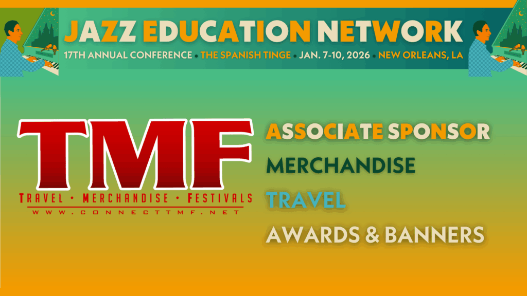 Travel • Merchandise • Festivals (TMF) is the exclusive merchandise partner and an official travel partner of the Jazz Education Network and provides awards and banners for the annual conference.